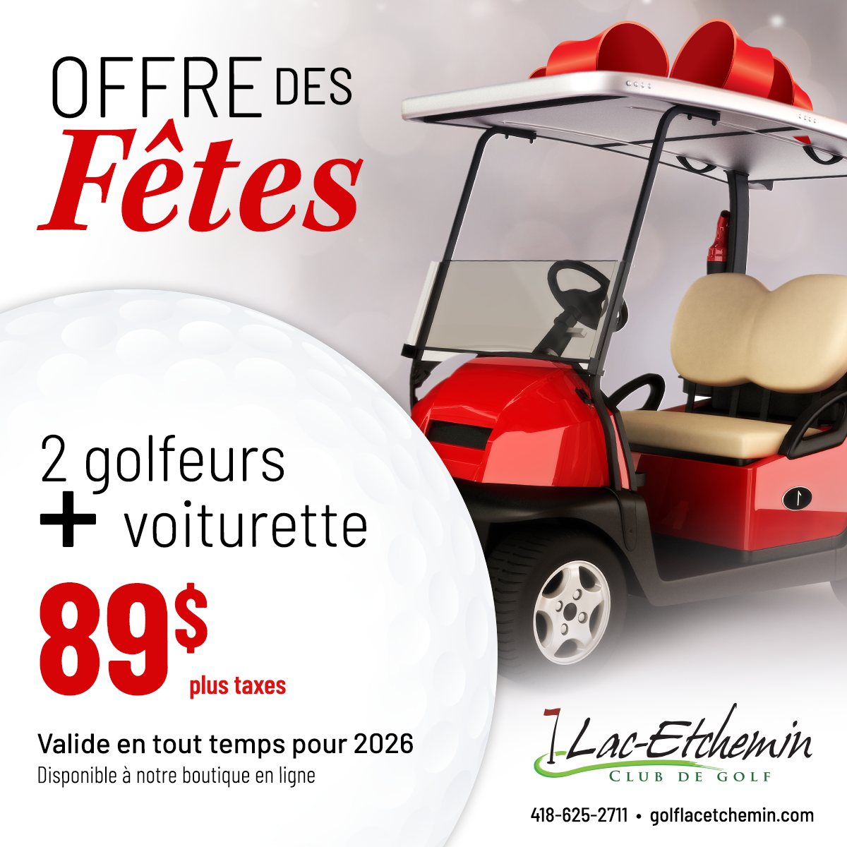 2 golfeurs en voiturette électrique valide en tout temps saison 2026, non valide lors de tournoi.